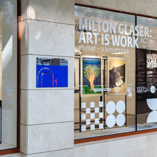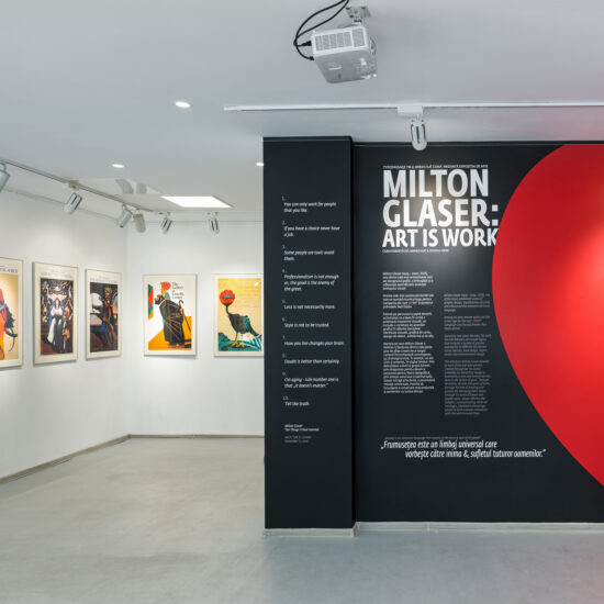 Expoziția Milton Glaser: Art is Work, curatoriată de graphic designerul timișorean Ovidiu Hrin (TypopassageTM), se desfășoară între 16 mai și 2 iunie la galeria Amzei Creative Corner și cuprinde o selecție de aproape 50 de afișe originale din opera lui Glaser.